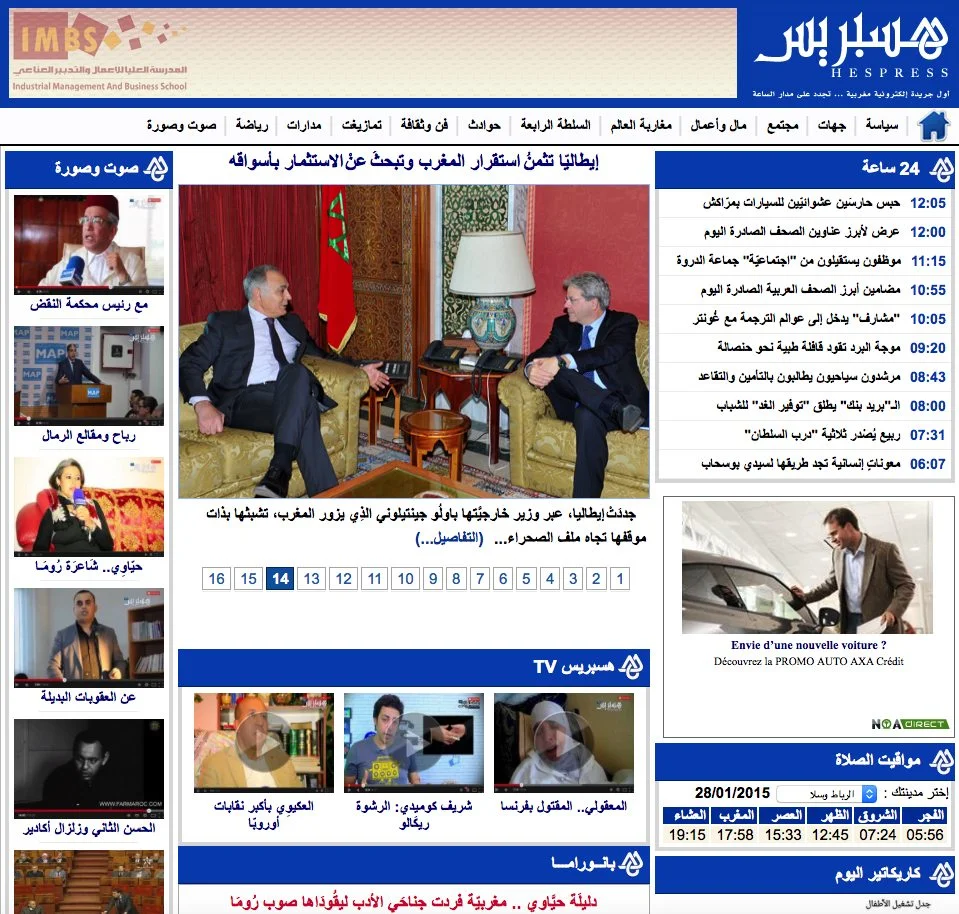 Le 14 février prochain, le site Hespress va fêter ses 8 années d’existence. Lancé en effet en 2007, le portail d’information marocain continue de progresser inexorablement et vient de se placer à la troisième place des sites internet les plus fréquentés au Maroc et ce, selon les statistiques du site Alexa, avec 2 millions de visiteurs par jour et 6 millions de pages vues au quotidien. Le site passe donc devant le géant Youtube au Maroc et positionne juste derrière Google et Facebook. Toujours, selon le même classement, le site est le 500ème site le plus visité au monde !