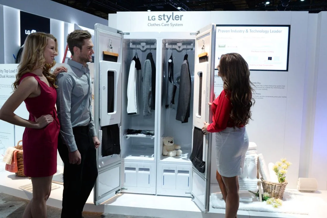 Parmi les nouveautés 2015, le LG Styler propose une fonction très utile : un presse-pantalon est désormais placé au niveau de la porte, permettant de repasser sans faire de plis et d’obtenir un pli central sur chaque jambe. La version 2015 permet également de communiquer avec d’autres appareils via les fonctions Smart Diagnosis™ et connectivité NFC. La fonction NFC permet à l’utilisateur d’installer une application gratuite et de télécharger des cycles personnalisés en fonction du type de vêtement, mais également de programmer leur armoire LG Styler d’une simple touche sur leur Smartphone.