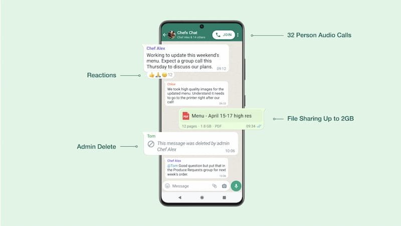 Alors que d’autres applications proposent des chats de groupe sans limites, WhatsApp concentre le développement de ses produits pour répondre aux besoins des organisations et autres groupes où de nombreuses personnes se connaissent déjà.